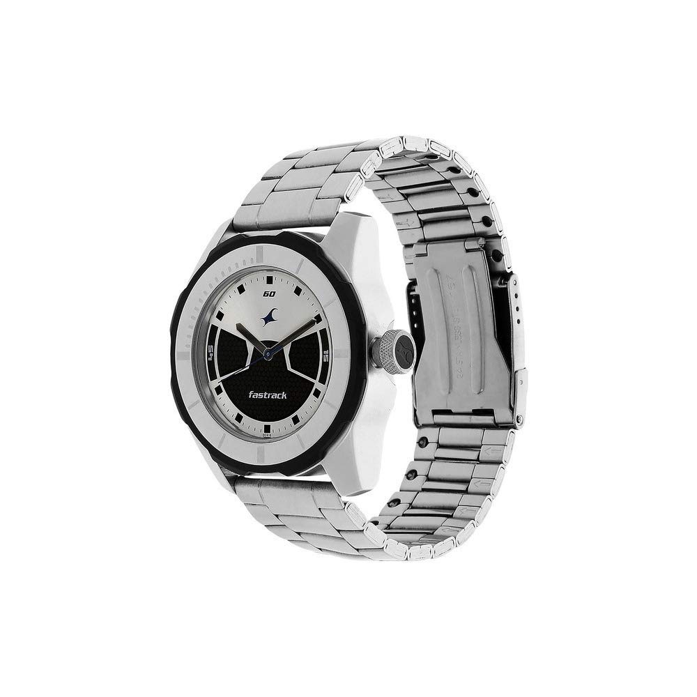 This chunky metal watch is for those who do not compromise on style and like to keep up with time. This trendy looking time piece from Fastrack comes cheap as it is from their Economy 2013 range, but promises all the jazz that the brand is famous for.The stainless steel strap of the Fastrack Economy 2013 Analog Multi-Color Dial Men’s Watch adds to its shine, making this a charming fashion accessory for the trend setters of the day. Designed for the sporty youth, this regular watch can be a great companion and makes sure you never miss the spotlight. The sporty plastic bezel ring surrounding the unique multi-coloured dial can add to your every day appearance. You can team this fashionable option from Fastrack men’s watches collection with your smart formals or sporty casuals and be the trendsetter on every occasion. Featuring quartz movement, this analogue watch can promise you precision and offer you a perfect time telling experience. Coming in a round dial, the three hands of the watch ensure that you are conscious about every hour, minute and second. Whether you are prepared to deal with the shocks or not, the mineral glass on the dial is, and can resist scratches, making it great for every day wear. While the deployment clasp can be adjusted so that the watch does not slip out of your wrist, the watch also offers water resistance capacity of up to 50 metres. The product comes with a one year manufacturing warranty and a 6 months battery warranty, so you can be rest assured about its quality.